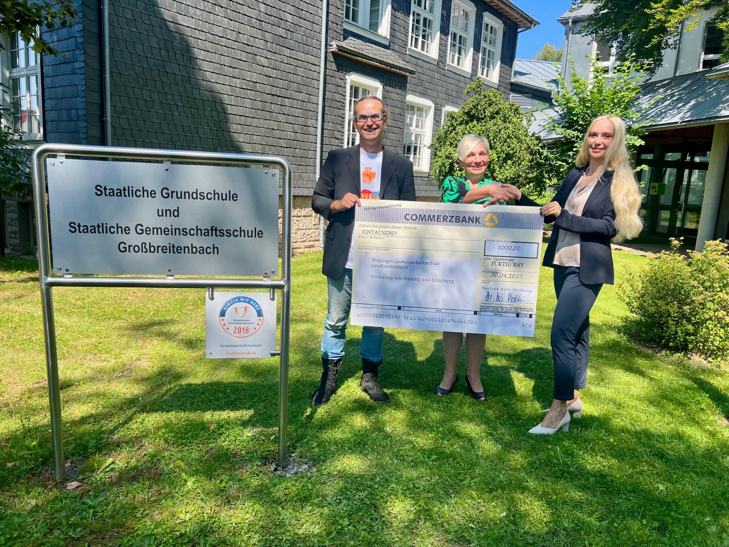 Die TGS Großbreitenbach erhält Spende von der Manfred Roth Stiftung. Unverhofft ereilte Matthias Wille am Nachmittag des ersten Schultags ein Anruf aus dem Fränkischen. Die Manfred Roth Stiftung hatte pünktlich zum Beginn des neuen Schuljahres beschlossen, der Gemeinschaftsschule in Großbreitenbach eine Spende in Höhe von 1.000 € aus Stiftungsmitteln zukommen zu lassen.